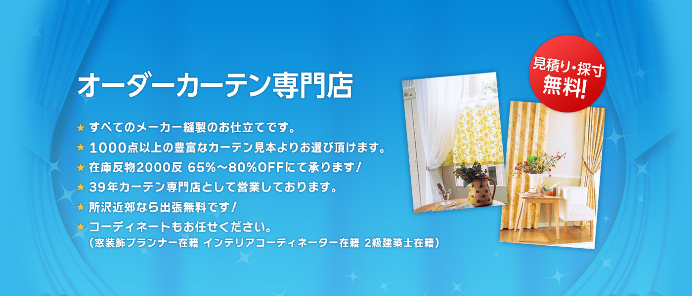 所沢市近郊(東京清瀬市、東久留米市、東村山市など)は無料で出張見積もり致します。カーテンの事ならお気軽にご相談ください!